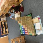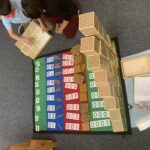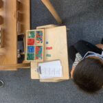Instead, through observation, the Guide learns which materials a child is ready for. The Guide then presents the material allowing children to always be challenged. The children can learn at their pace and at their own level. Using the example of learning linear counting, 1-10, there are several materials on the shelf for the child to practice, thus learning the concept of “7”.